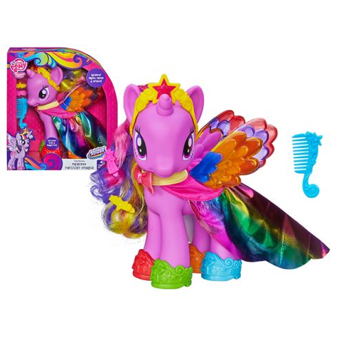 Играйте вместе с Принцессой Твайлайт Спаркл и делайте ей самые замечательные, красивые и удивительные прически с помощью расчески и заколок для гривы. Размер пони - 20см.