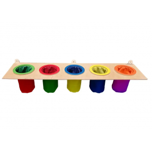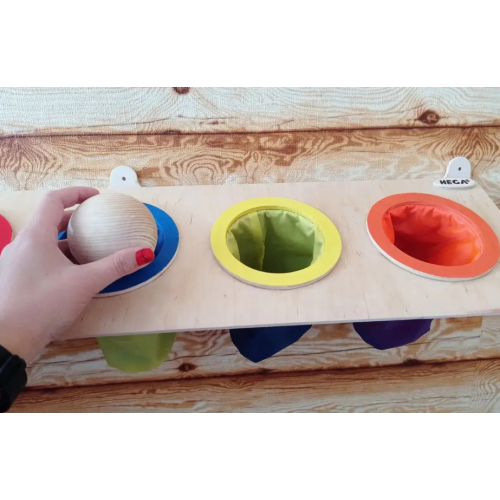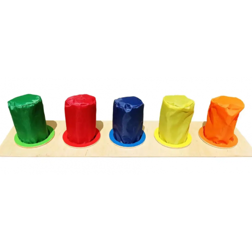 Бизиборд - это развивающая стенка, которая содержит различные интересные детали. Данный бизиборд состоит из деревянной основы и 5 цветных мешочков.