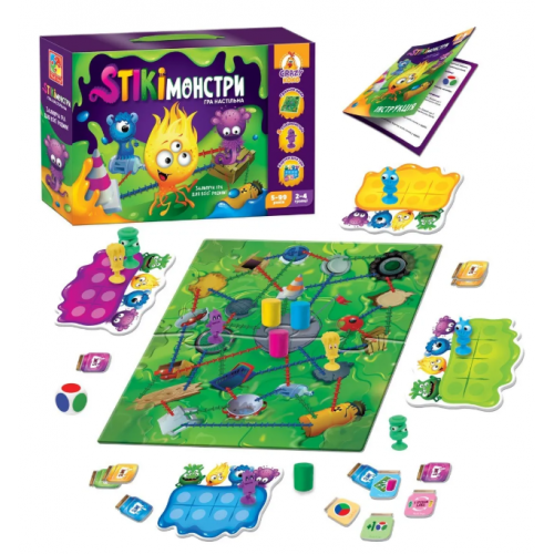 Отправляйся на охоту за стикимонстрами! В этой веселой игре тебе нужно найти скрытых монстриков и поймать их быстрее других. Бросай кубик, двигайся по полю, выполняй задания и собирай свою коллекцию стикиз! Идеально для игроков от 5 до 99 лет. Играй вместе с друзьями и семьей – развлечение гарантировано!
