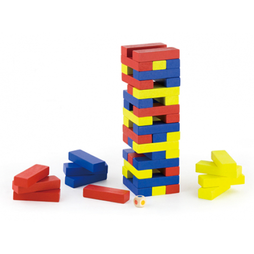 Изделие представлено набором ярких цветных блоков для строительства башни. Играть могут 2 и больше детей.
