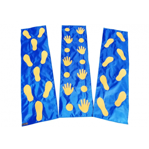 Набор сенсорных ковриков предназначен для физкультуры в обычных и специализированных дошкольных учреждениях и для занятий лечебной физкультуры. Коврик разделен на три дорожки . Развивает координацию движений, внимание; укрепляет мышцы ног, рук, спины; формирует правильную осанку, самоконтроль; предупреждает профилактику плоскостопия.