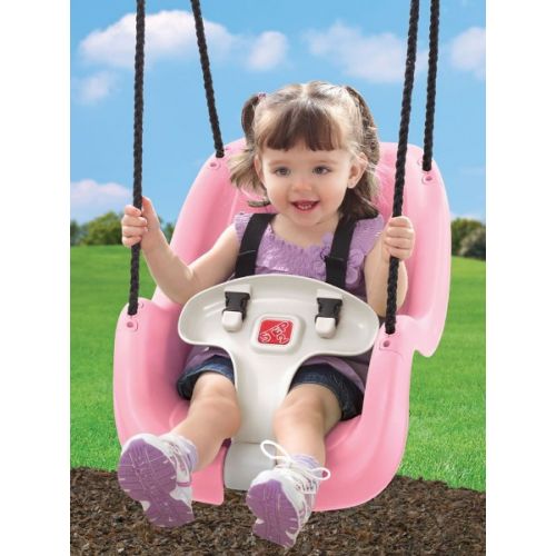 Изделие в виде подвесной качельки. С закрытой спинкой, высокими боковинами, ремнями безопасности, защитным бампером, крепким канатом.