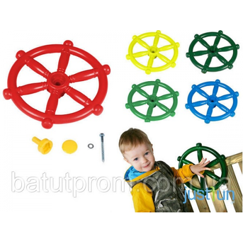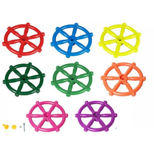 Колесо капитана для игровой площадки сделано из прочного пластика, погодных условий и ультрафиолетовых лучей. Колесо крепится к деревянной конструкции на болтах. Простая установка. В групповой игре развивает социальные навыки. Развивает фантазию, мышление, моторику. Позволит малышу почуствовать себя капитаном коробля. Доступные цвета: красный, желтый, синий, зеленый.