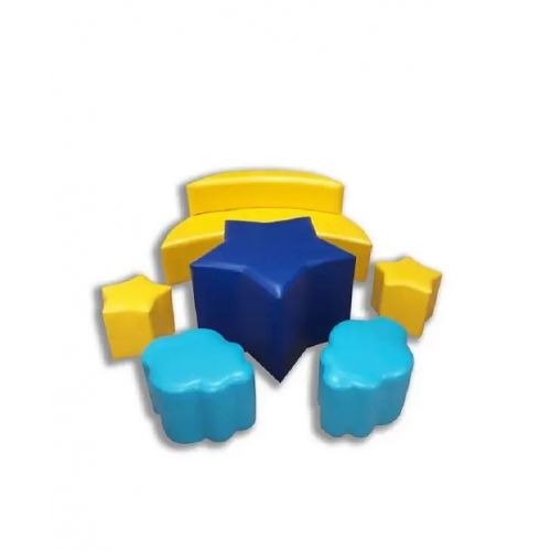 | Размер | диван - 135х70х60 см; пуф звездочка - 37х37х35 см; стол - 85х85х55 см; пуф облачко - 50х37х35 см; 1,78 м5 |