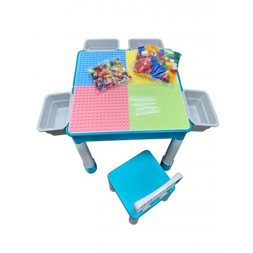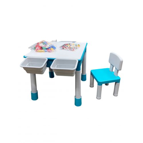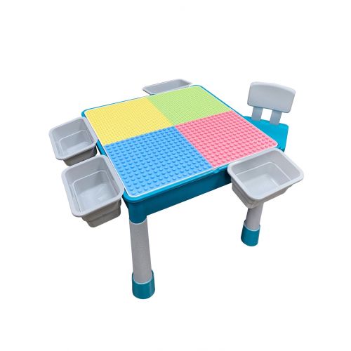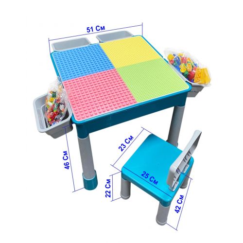 "Игровой центр" представяет собой конструктор, который собирается в набор детской мебели из деталей в наборе. Набор состоит из столика для игр, 2 стульчиков и 0,5кг ЛЕГО-совместимых деталей.