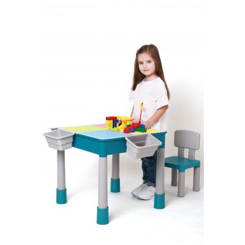 С одной стороны поверхность стола совместимая с деталями ЛЕГО и ЛЕГО ДУПЛО, с другой стороны ровная поверхность для игр, рисования, разных занятий