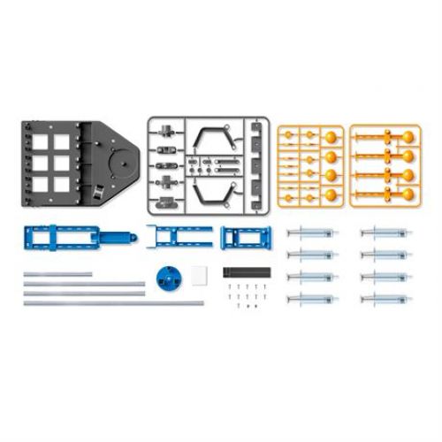 Набор состоит из: ручка x 4, крышка ручки, левый коготь, правый коготь, разъем когтя x 2, штифт x 3, стопор x 2, ползунок нижняя часть, крышка шприца, верхняя часть ползуна, шарнир шприца, держатель шприца, колпачок иглы x 6, колпачок поршня x 7, колпачок ручки x 4, основание пластины, рама когтя, вращающейся рама, рама верхнего рычага, основа вращающейся шприц x 8, поршень шприца x 8, коготь прокладки, длинная труба, средняя труба x 2, короткая труба, клеевая лапка, маленький винт x 11 винт с плоской вершиной x 2.