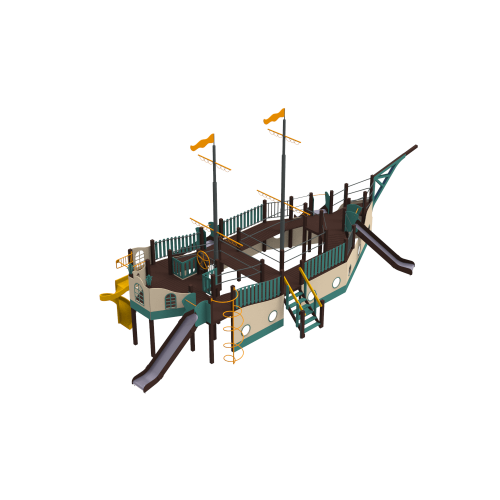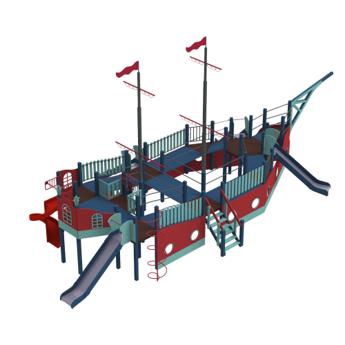 | Комплектация | состоит из конструкции в виде корабля со всеми атребутами – штурвалом, иллюминаторами и каютами. Корабль дополнен 4 металлическими горками и пластиковой спиральной |