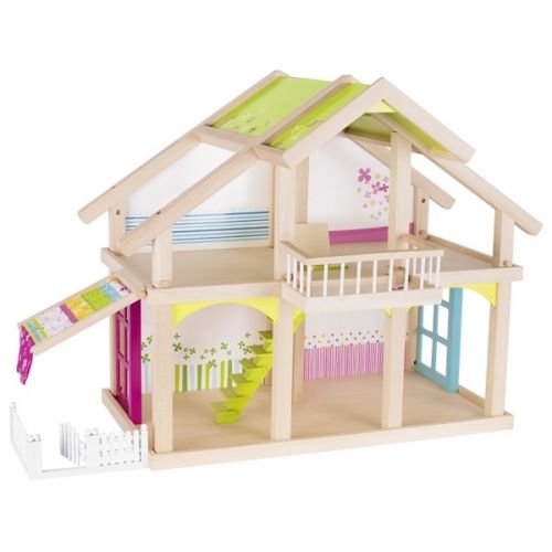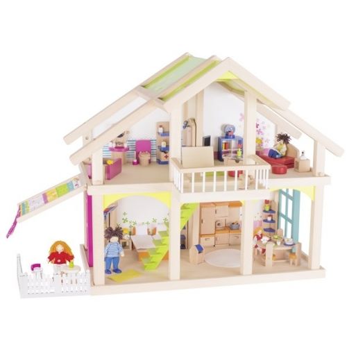 Кукольный домик для девочек состоит из 2 этажей и имеет внутренний дворик. Все элементы изделия сделаны из натурального дерева и покрытые яркими нетоксичными красками на водной основе, поэтому безопасны для детей.