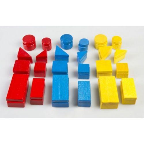 Изделие в виде набора фигурок-блоков разной формы, цвета, размера и толщины. Все детали закругленные. Можно играть в логическое домино и разные игры.