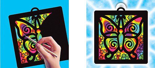 Изделие в виде набора из трафарета, деревянного стилуса, присоски, картинки с бабочкой для изготовления яркого витража.