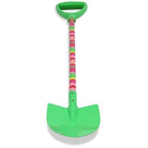 Изделие в виде большой детской лопатки зеленого цвета с полосатой ручкой.