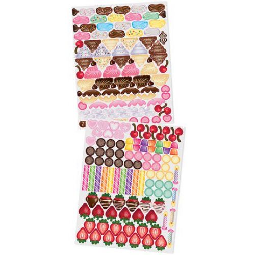 Изделие в виде набора из 16 страниц с фоном и 500 наклеек разных ярких сладостей.