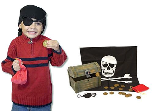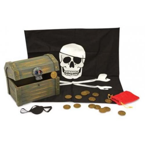 Каждый мальчишка в детстве мечтал стать пиратом, и иметь свой пиратский сундук, в котором можно прятать ценные сокровища. В деревянном наборе пирата есть бандана, бархатный мешочек с золотыми монетами, повязка на глаз, тайник, замок в виде черепа.