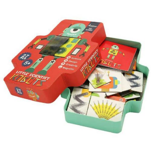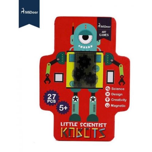 Изделие в виде набора из магнитной доски, 27 маленьких магнитов частей робота, решетчатой пластины, инструкции. С помощью пластины детали робота двигаются. Игра развивает воображение, логику.