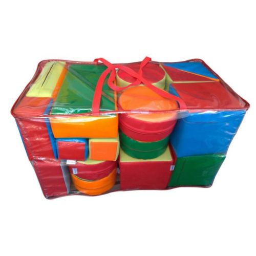 Изделие в виде мягкого конструктора из разных геометрических мягких модулей и 4 фигур. Модули на молнии. Развивают моторику и воображение.