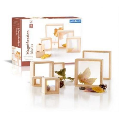 Изделие в виде набора блоков квадратной формы разного размера. С прозрачными вставками для хранения разных предметов внутри и функцией двухкратного увеличения. Блоки можно сложить один в один в пирамидку. Игра развивает мышление, воображение, творчество. Размер самого маленького блока: 5х5 см.
