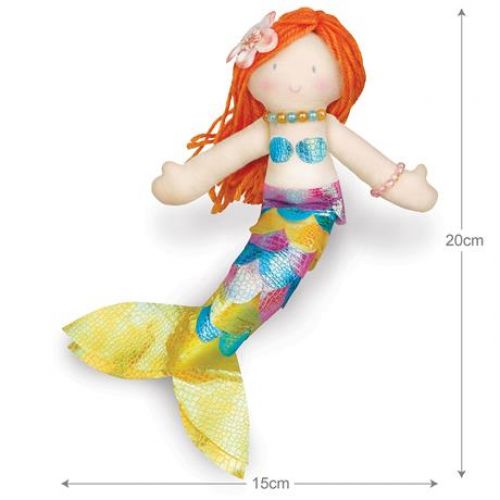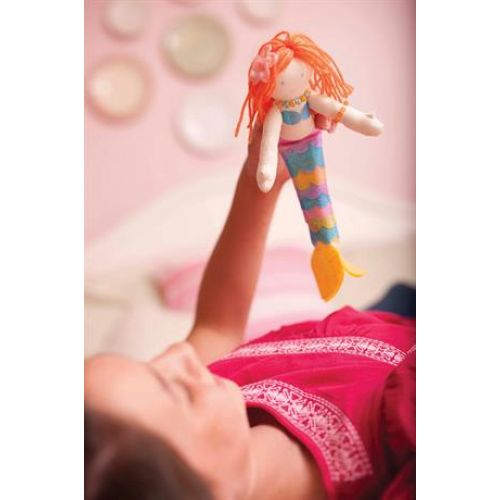 В комплекте мягкая кукла, нитки, ткань, украшения, липкая лента, клей, цветные карандаши, трафарет и свидетельство, которое ребенок сможет заполнить.