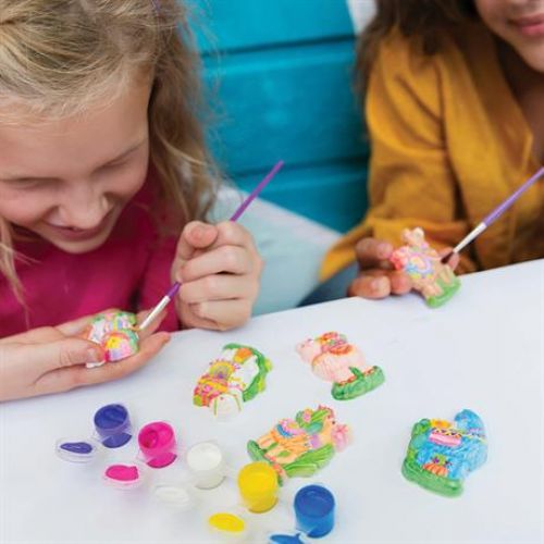 В наборе: гипс, формы для гипса в виде лам, кисточку, краски, защелки, магниты. Ребенок может слепить фигурку, разрисовать ее, просушить и наклеить магнит или булавку.