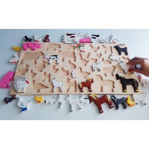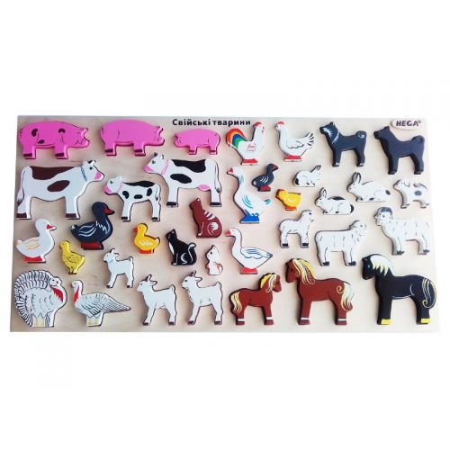 Изделие в виде яркого набора из рамки и 36 цветных фигурок разных домашних животных для игры и изучения животных.