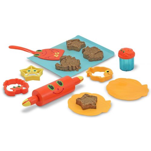 Этот замечательный набор порадует юного кондитера, он с огромным удовольствием будет "выпекать" вкусное и красивое "печенье", для этого понадобится скалка ярко-оранжевого цвета с мордашкой краба, 3 формочки: оранжевая рыбка, желтая морская звезда и оранжевый крабик, лопатка-крабик, чтобы снимать печенье с противня, 2 оранжевые тарелочки в форме ракушек, шейкер и голубой противень. Набор можно хранить в сетчатом мешочке, который идет в комплекте. Набор изготовлен из прочного и приятного на ощупь пластика.