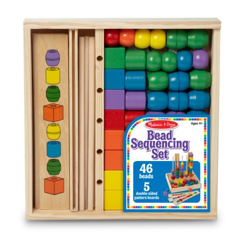 Этот развивающий набор включает в себя 5 деревянных дюбелей, 45 деревянных бусин разных форм и 5 двухсторонних деревянных карточек, по которым нужно последовательно надеть бусины на дюбеля. Развивает мелкую моторику, внимательность, сосредоточенность. Упакован в деревянную коробку. Предназначен для детей от 4 лет.