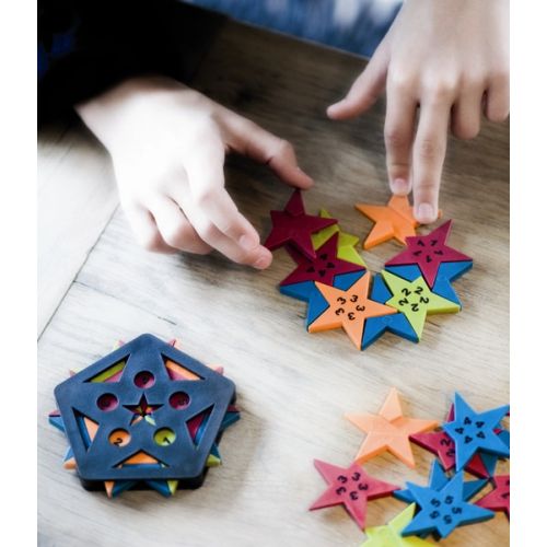 2. Как в настольную игру. Количество участников от 2 и более. Игра проходит в 2 раунда: в первом учитывается собранная звезда только по цветам, второй раунд сложнее, кроме цветов учитываются еще и цифры элементов.