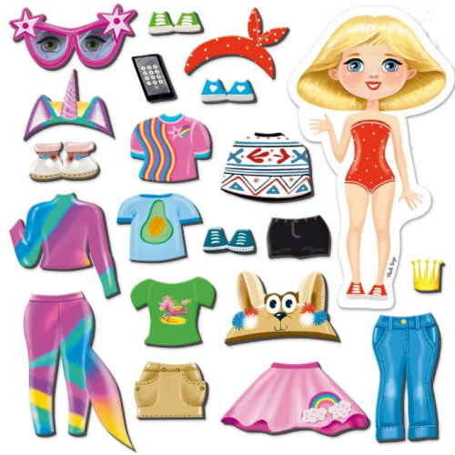 Магнитная игра для детей 3-5 лет! Рассмотрите все образы, выберите стиль и создайте свой шедевр, прикрепляя элементы одежды к кукле. Развивает эстетический вкус, логику, воображение и мелкую моторику. Мягкие и приятные на ощупь магниты обеспечат комфортную игру!