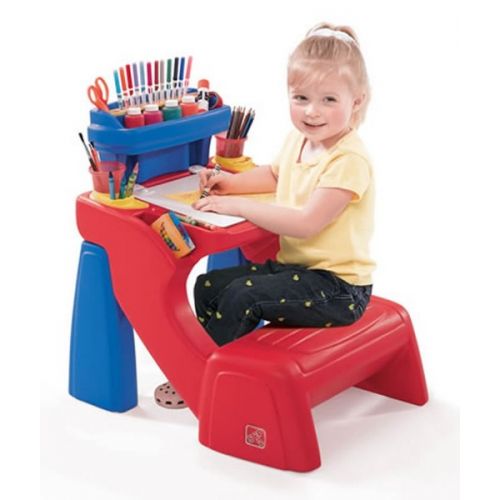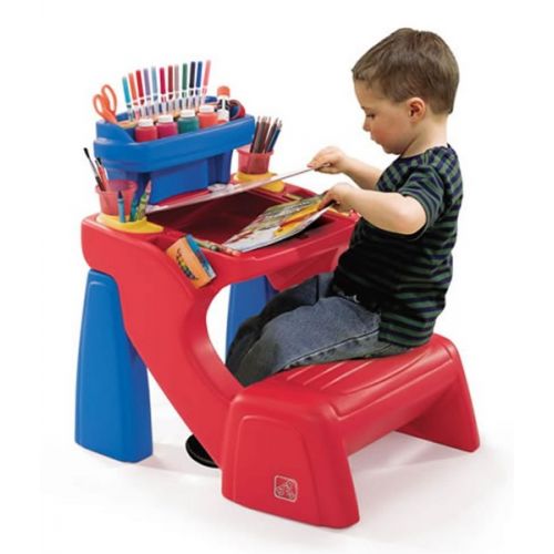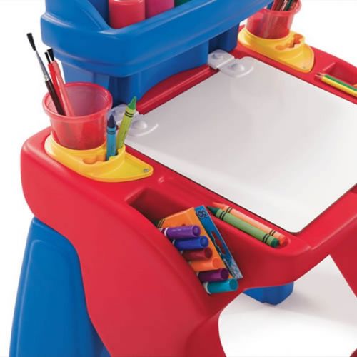 Изделие в виде комплекта парты и сидения. С большой рабочей поверхностью для рисования, широким удобным сидением, вместительными полками, 2 настольными органайзерами для хранения канцтоваров.