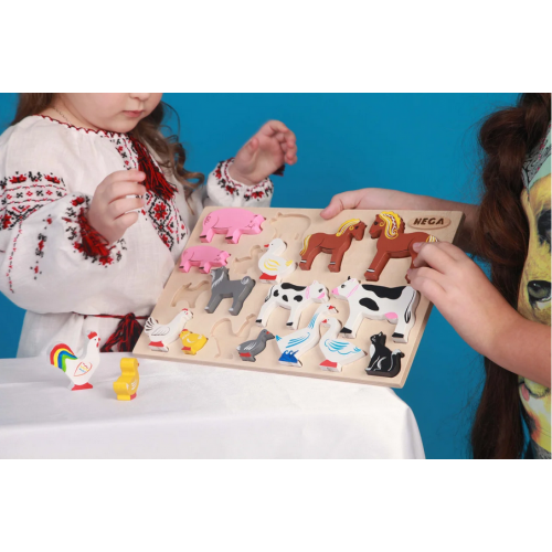 В комплекте: планшет, 18 фигурок-пазлов в виде симпатичных зверей. Фигурки яркие и безопасные для детей, расписаны вручную. Это головоломка, пазл и конструктор одновременно.