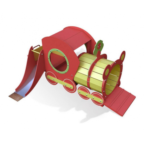 Детский элемент Поезд с горкой способствует развитию крупной моторики, изучение цветов и игры.