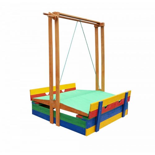 | Комплектация | деревянное основание с удобными бортиками; деревянные цветные лавочки-трансформеры с отверстиями для закрывания песочницы; деревянная стойка с механизмом и тросом для регулировки высоты крыши; тентовая, слегка покатая двухсторонняя крыша, закреплённая на деревянной планке |