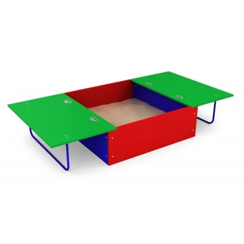 Изделие в виде уличной закрытой песочницы квадратной формы с оригинальным дизайном. Крышка раскладывается в 2 сидения. Для детей от 2 лет.