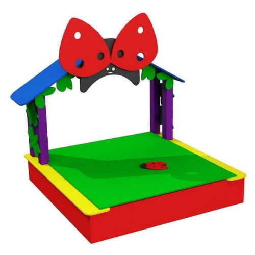 Изделие в виде уличной яркой песочницы с оригинальным дизайном. С крышкой для защиты песка. Для детей от 2 лет.