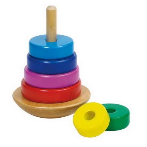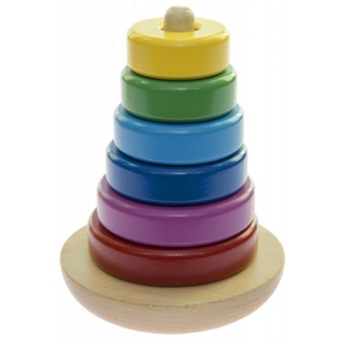 Все основные элементы выполнены из экологически чистого дерева и окрашены в яркие цвета. Высота игрушки 12 см, она имеет 6 разноцветных колец и подставку-качалку. С помощью этой пирамидки ребенок знакомится с понятием «больше-меньше». Натуральная яркая игрушка поможет ребенку развить множество навыков: логическое мышление, восприятие цвета, память, моторику пальцев и координацию движений.