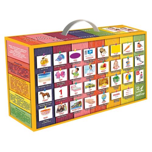 Теперь появилась возможность заниматься со своими малышами по готовым ярким и красочным карточкам из серии «Вундеркинд с пелёнок», где соблюдены основные принципы Домана: на картинке изображен только 1 предмет, отчетливо видны все детали этого предмета, у предмета есть определенное название, карточка достаточно большая и чистая, подпись красным шрифтом и крупная. 34 набора, 1720 карточек.