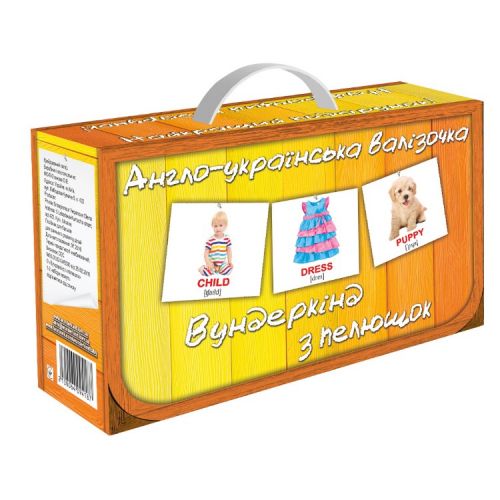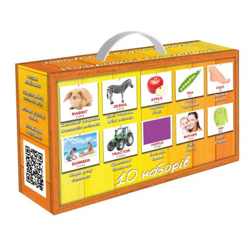 Изделие в виде чемодана с 10 наборами мини карточек на английском и украинском языках.