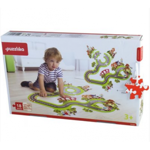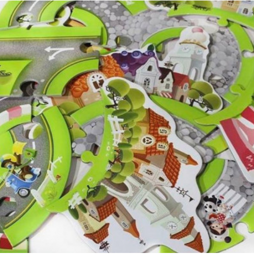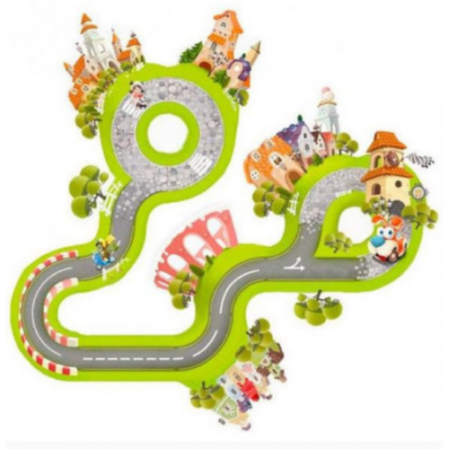 Изделие в виде сказочной дороги с яркими элементами. Части дороги могут крепиться в произвольном порядке, каждый раз ребенок получает другую дорогу, создает новые или старается воспроизвести по образцу