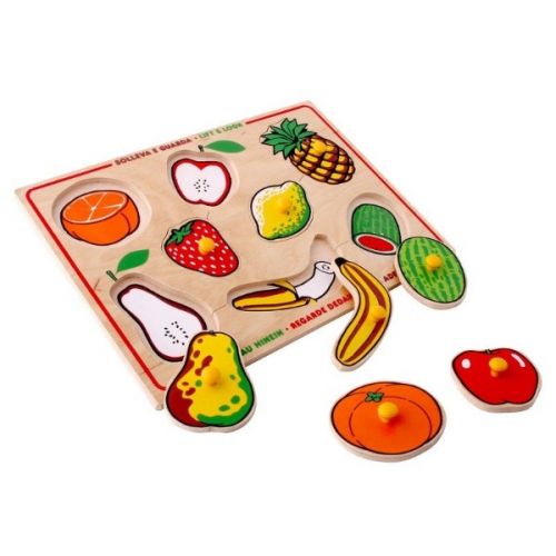 Изделие в виде набора из рамки-основы с рисунками в ячейках и 8 элементов-пазлов фруктов. С ручками-кнопками. Игра развивает мелкую моторику, внимание, логику, воображение, творчество.