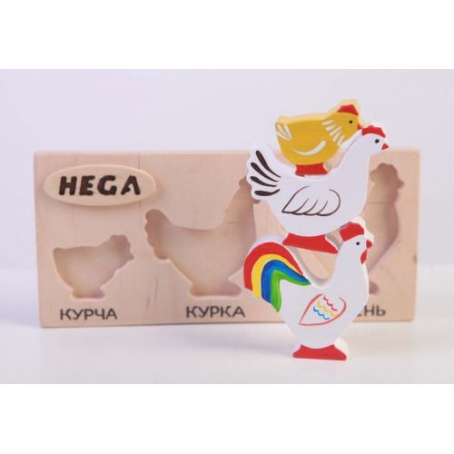 В комплекте: рамка с надписями, 3 фигурки, 3 карточки с фото, инструкция. Фигурки яркие и безопасные для детей, расписаны вручную с двох сторон. Это головоломка, пазл и конструктор одновременно.