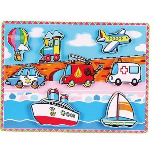 Изделие в виде яркого набора из рамки-основы с рисунком и пазлов разного транспорта. Фигурками можно играть отдельно. Игра развивает мелкую моторику, логику, воображение, память, мышление.