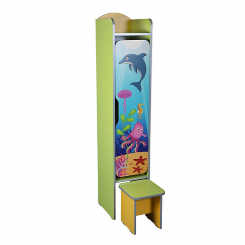 Шкаф детский 1-местный для раздевалки, со скамейкой и фотопечатью Подводный мир.