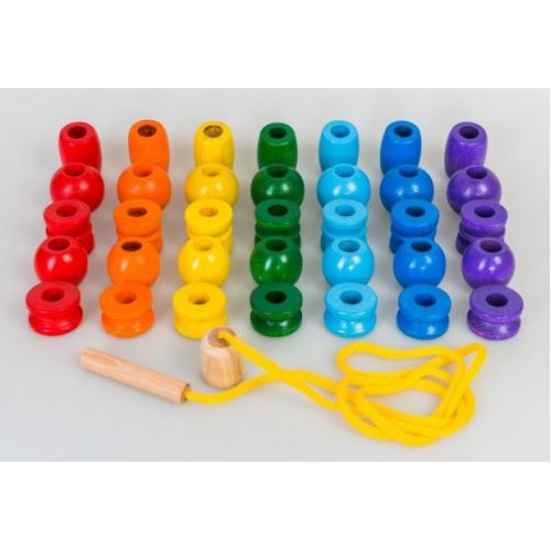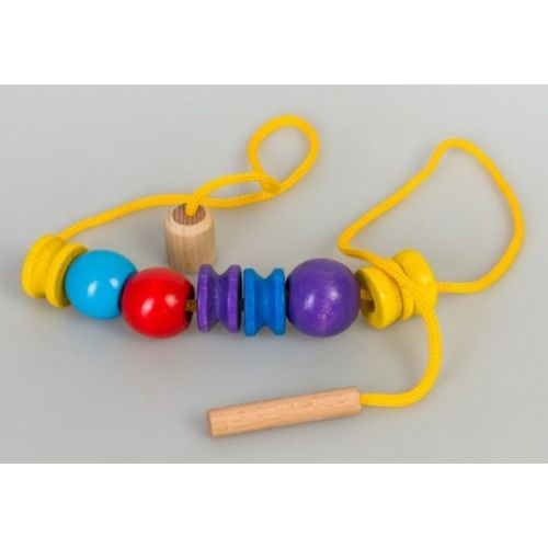 Изделие в виде набора разноцветных бусинок разной формы и шнурочка для нанизывания.