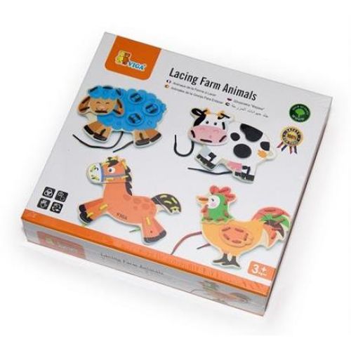 Изделие представлено ярким набором из 4 разных животных и 4 шнурков для нанизывания.
