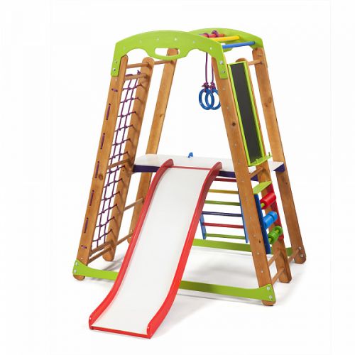 Многофункциональный спортивный уголок изготовлен из качественных, безопасных материалов. Соответствует европейским стандартам и требованиям ГОСТа. Не требует крепления, поэтому его можно перемещать по помещению. Занятия на этом спортивном уголке будут способствовать укреплению всех групп мышц, развитию вестибулярного аппарата, профилактики заболеваний центральной нервной системы, умственного развития и оздоровления организма в целом. Игровые элементы - мольберт и счеты привлекут внимание ребенка иразовьют его творческие и математические способности. Комплекс предназначен для игровых комнат, спортзалов, классов ЛФК, оздоровительных и развлекательных центров или для дома.