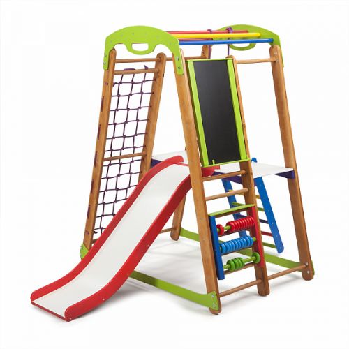 1. Шведская стенка. 2. Гладиаторская сетка. 3. Рукоход 4. Детская горка. 5. Кольца. 6. Лесенка 7. Столик 8. Мольберт (для мел/маркер) 9. Счеты цветные |