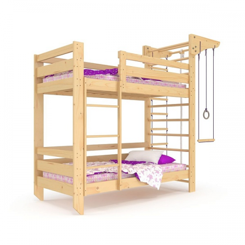 Эта двухъярусная кровать, которая станет идеальным выбором для пространства вашей детской комнаты. В комплект входит защитное ограждение для безопасности на верхнем ярусе, который может быть установлен слева или справа от лестницы. Размеры спального места составляют 80 на 190 см, а габариты кровати – 198 на 88 на 180 см. Защитные бортики имеют высоту 50 см, а высота от пола до начала верхнего яруса составляет 134 см. Кровать изготовлена из деревянного массива сосны. под матрас из крепкой древесины сосны толщиной 70 мм на 22 мм. Максимальная нагрузка на одно спальное место – 100 кг.