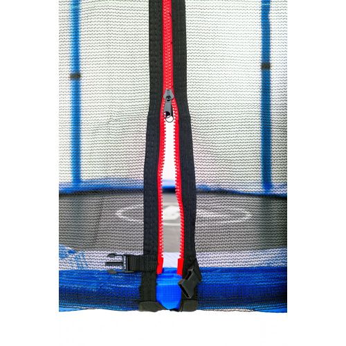 Изделие в виде яркого батута. С защитной сеткой на молнии, 6 опорами сетки, матом.