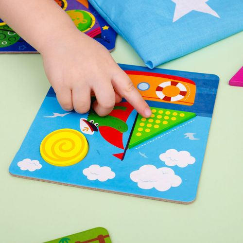 Транспорт: 6 карточек с животными и транспортом, 12 деревянных фигурок |