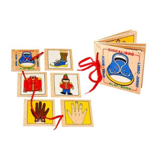 Виріб у вигляді книги-шнурівки з 6 яскравими панелями, малюнками і мотузкою. Гра розвиває дрібну моторику, мислення, логіку, уяву, увагу.